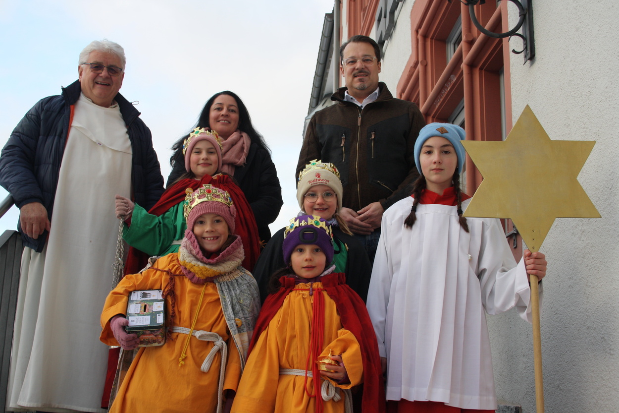 Sieben Sternsingergruppen mit insgesamt 45 Kindern und ihren Begleitpersonen waren in Todtmoos und den Ortsteilen unterwegs, um Geld für notleidende Kinder zu sammeln, und den Segen Gottes in die Häuser zu tragen. In diesem Jahr wird Geld für Kinder in Bangladesch gesammelt, um sie von der dort weit verbreiteten Kinderarbeit zu befreien. Am Dreikönigstag wurde der offizielle Aussendungsgottesdienst in der Wallfahrtskirche gefeiert. Bürgermeister Marcel Schneider hatte auch in diesem Jahr eine Sternsingergruppe in das Rathaus eingeladen. Mit dabei war auch Pater Roman Brud.Fotos: Andreas Böhm