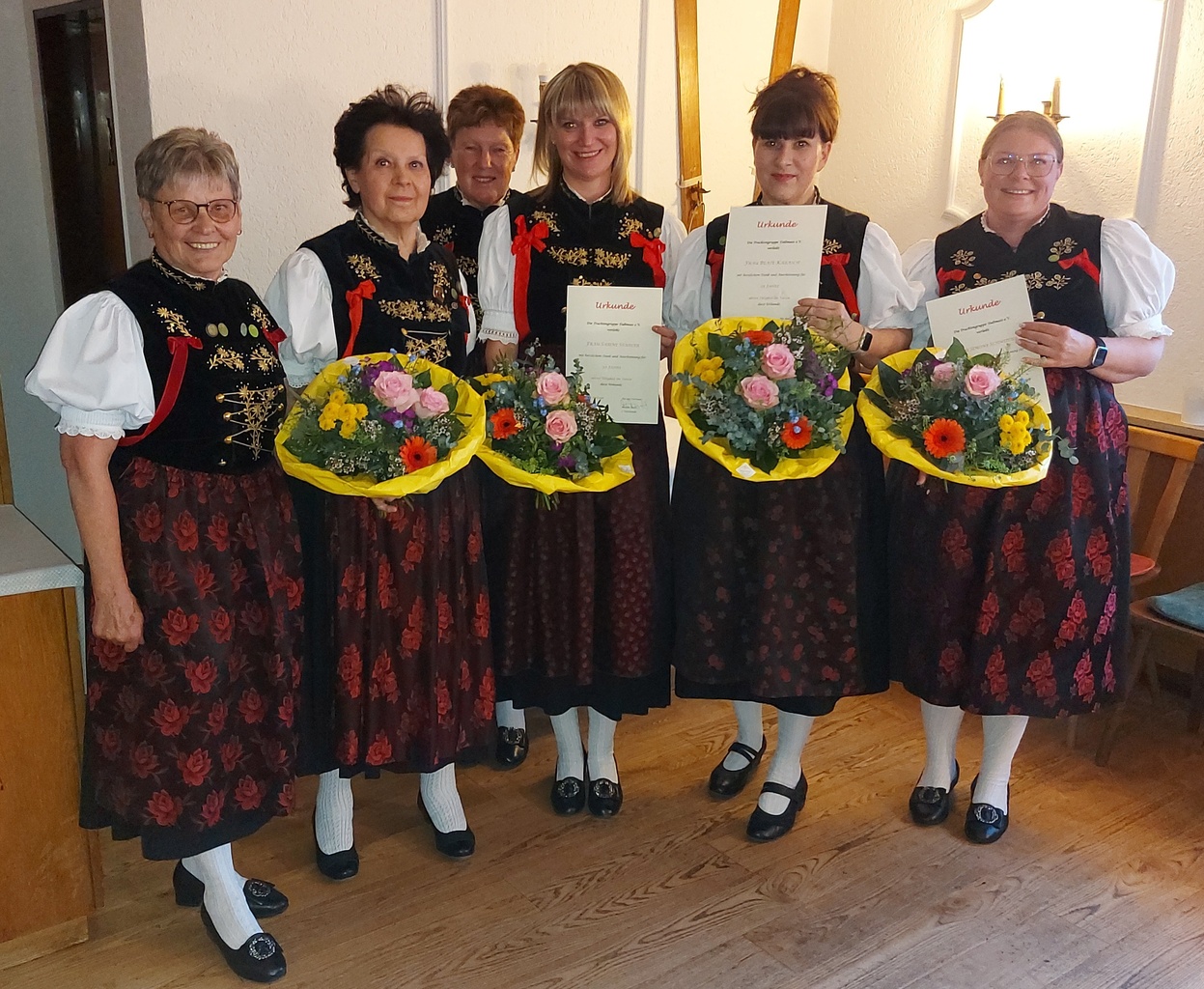 Bei der diesjährigen Jahreshauptversammlung der Trachtengruppe Todtmoos im Hotel Maien standen Neuwahlen sowie reichlich Ehrungen an. Geehrt wurden von der Vorsitzenden Monika Matt für jeweils 30 Jahre Mitgliedschaft in der Trachtengruppe Simone Schneider und Sabine Stadler sowie Beate Karasch für 25 Jahre Mitgliedschaft. Bei den Neuwahlen wurden Silvia Spitz als Kassiererin, Anni Haselwander als erste Beisitzerin sowie Monika Matt als Vorsitzende einstimmig wiedergewählt. Bürgermeister Marcel Schneider dankte der Trachtengruppe im Namen der Gemeinde Todtmoos für die wichtige Brauchtumspflege durch Tanz, Musik und Tracht.