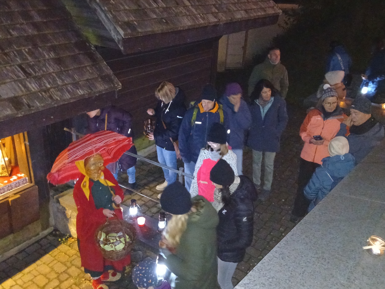 Wanderführerin Doris Strittmatter begleitet die Gäste im Schein der Laternen im Wechsel zu einigen geheimnisvollen Orten in Todtmoos. Dazu gehört unter anderem der historische Bierkeller am Eingang zur Hohwehraschlucht. Den krönenden Abschluss der „Laternenwanderung zu den Lebküchlern“ erleben die Gäste an den historischen Wallfahrtsständen. Wie der Titel der Wanderung verrät, warten am Stand die Todtmooser Lebküchler, eine der ältesten Zünfte im Ort, mit leckeren Lebkuchen, Glühwein und Punsch auf. Die erste Wanderung fand am 29. Oktober statt. 21 Gäste nahmen daran teil. Weitere Termine unter www.todtmoos.de. Eine Anmeldung ist erforderlich bei der Touristinformation.Fotos Andreas Böhm