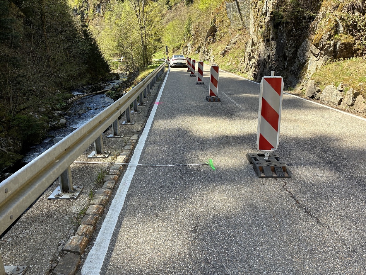 An der Landesstraße 148 im Wehratal zwischen Todtmoos und Wehr ist im Bereich des Landkreises Lörrach eine Stützmauer eingebrochen. Wie das Regierungspräsidium Freiburg (RP) mitteilt, wurde die Straße im Schadensbereich diese Woche aus Sicherheitsgründen halbseitig gesperrt. Der Verkehr wird auf einem Abschnitt von rund 100 Metern per Ampel geregelt. Fahrzeuge über 3,5 Tonnen werden großräumig über Todtmoos und Rickenbach umgeleitet. Die Umleitung wurde am Freitag eingerichtet. Sie muss bis zur Sanierung der Straße bestehen bleiben.Die rund 90 Meter lange Mauer aus Natursteinen, die unterhalb der Straße an der Wehra verläuft, ist eingebrochen, ohne dass größere sichtbare Schäden in der Fahrbahn erkennbar sind. Nachdem Anfang der Woche festgestellt wurde, dass im Schadensbereich unter der Fahrbahndecke kein Unterbau mehr vorhanden ist, hat das RP umgehend die halbseitige Sperrung der Straße veranlasst.