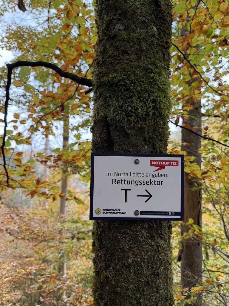 Am Sonntag, den 19.10.2025 hat die Bergwacht Ortsgruppe Todtmoos entlang der letzten Etappe des Schluchtensteigs (Todtmoos → Wehr) im Bereich des Wehratals neue Hinweisschilder zur Kennzeichnung der sogenannten Rettungssektoren angebracht. Die Beschilderung erleichtert im Notfall die Lagebestimmung und verkürzt so die Zeit bis zum Eintreffen von Rettungskräften. Die sechste und abschließende Etappe des Schluchtensteigs ist mit rund 23 km Länge sowie markanten Auf- und Abstiegen anspruchsvoll und führt unter anderem durch die wildromantische Wehraschlucht — ein Wegabschnitt, der durch enge Täler, steile Hänge und teilweise schmale Pfade geprägt ist. Für Wandernde und Rettungsdienste ist daher eine präzise Ortsangabe besonders wichtig. Was sind Rettungssektoren und warum sind sie wichtig? Rettungssektoren unterteilen längere Wegeabschnitte in alphabetisch benannte Segmente, die im Notfall telefonisch an die Leitstelle übermittelt werden können. Dadurch lassen sich Einsatzkräfte gezielt und schneller zur richtigen Stelle führen, was ein erheblicher Zeitgewinn bei medizinischen Notfällen oder Rettungseinsätzen in unwegsamem Gelände bringt. Im Schwarzwald spielen zudem die standardisierten Wegweiserstandorte bereits eine wichtige Rolle als Rettungspunkte; ähnliche Kennzeichnungen erhöhen die Sicherheit für alle Nutzerinnen und Nutzer des Wegenetzes. Die Beschilderung ergänzt die bereits vorhandene Wegweisung und soll vor allem Wandernde auf den langen, zum Teil exponierten Abschnitten unterstützen: „Mit der heutigen Kennzeichnung wollen wir die Sicherheit auf dieser landschaftlich reizvollen, aber teils anspruchsvollen Etappe weiter verbessern. Ein kurzer Hinweis wie ‚Rettungssektor XY‘ hilft uns, schneller vor Ort zu sein und Leben zu retten“, so Fabian Eckert Stellvertretende Ortsgruppenleitung der Bergwacht Todtmoos. Hinweise für Wandernde: