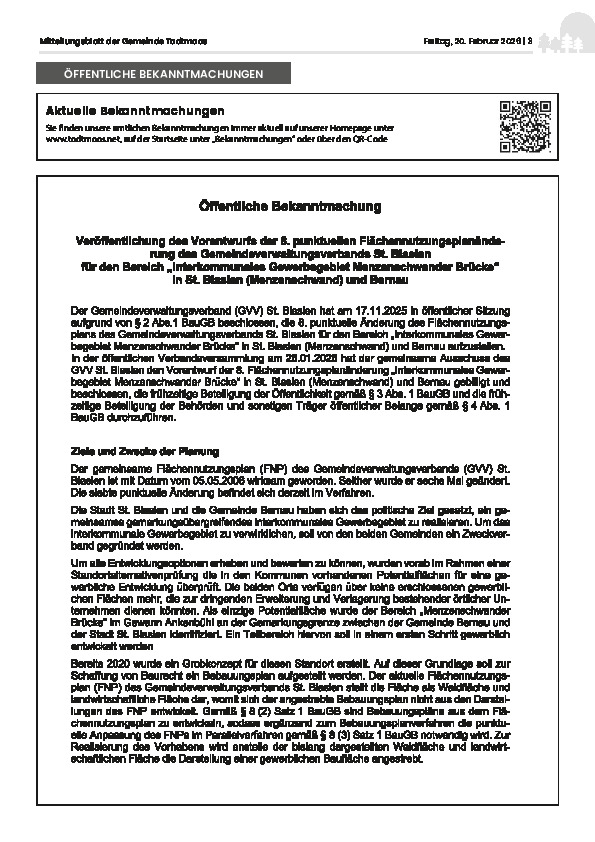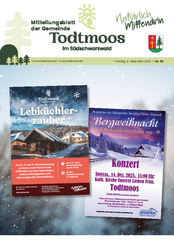 Das Mitteilungsblatt der Gemeinde Todtmoos erscheint jeden Freitag.